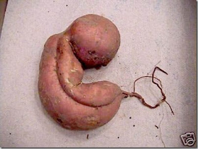 Sadly, I don't have a garden, otherwise I'd probably be growing some veggies. Some disturbingly shaped ones, like this FOETUS POTATO.